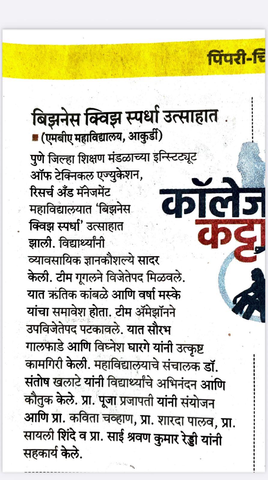Institute of Technical Education, Research & Management, Akurdi is formed under the rich heritage of Pune District Education Association by visionary leader Hon'ble Ajit Pawar. This institution is evolving into a mammoth educational hub, fulfilling the ever-changing needs of the industry and society with a focused commitment to quality education.
